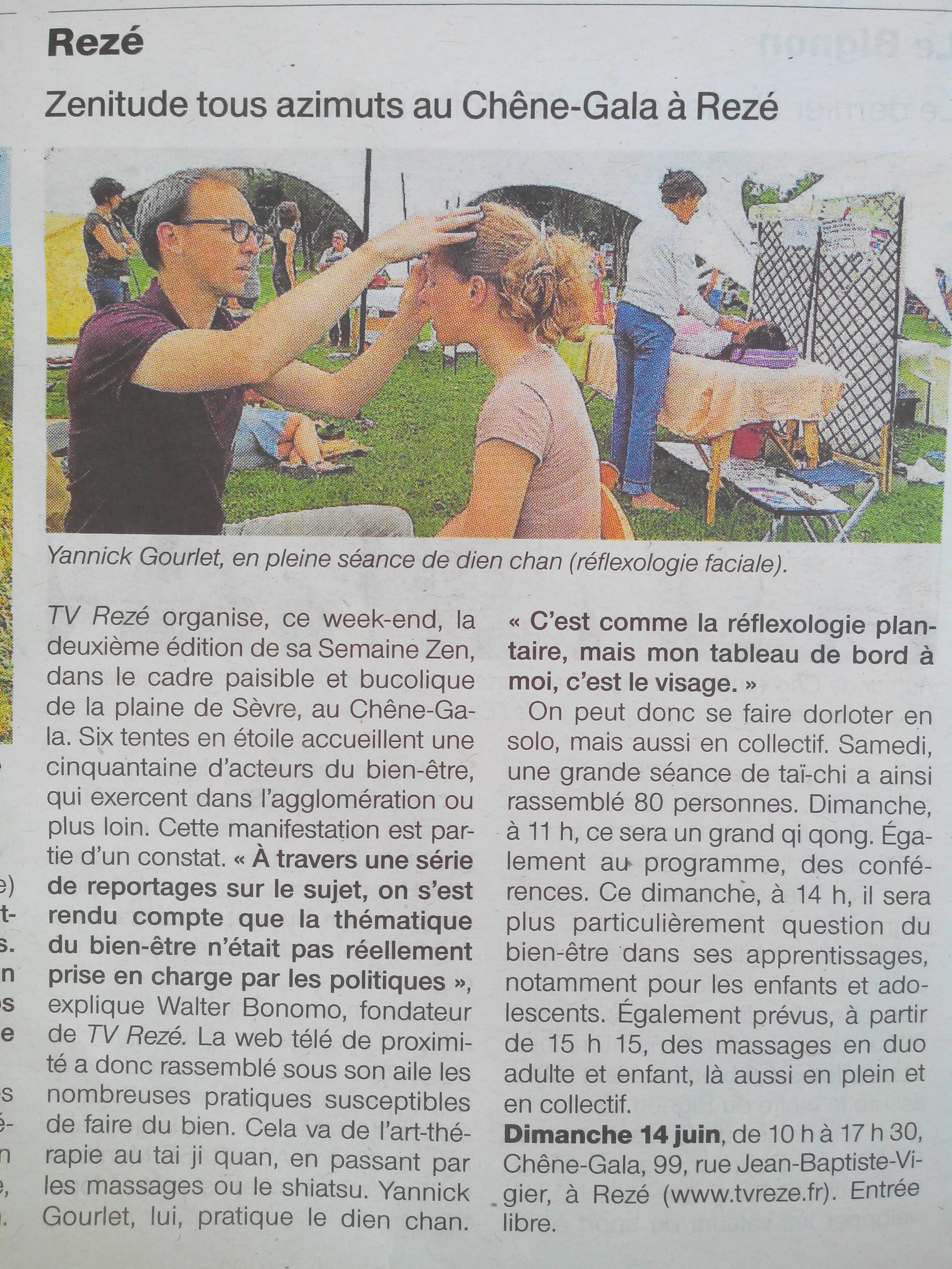 Voici la semaine Zen qui prend fin. Le week-end a alterné grand soleil et pluie, un bel équilibre à l’image de ce que doit être notre corps ! J’ai eu le plaisir et la chance d’illustrer l’article Ouest-France qui couvrait l’évènement.